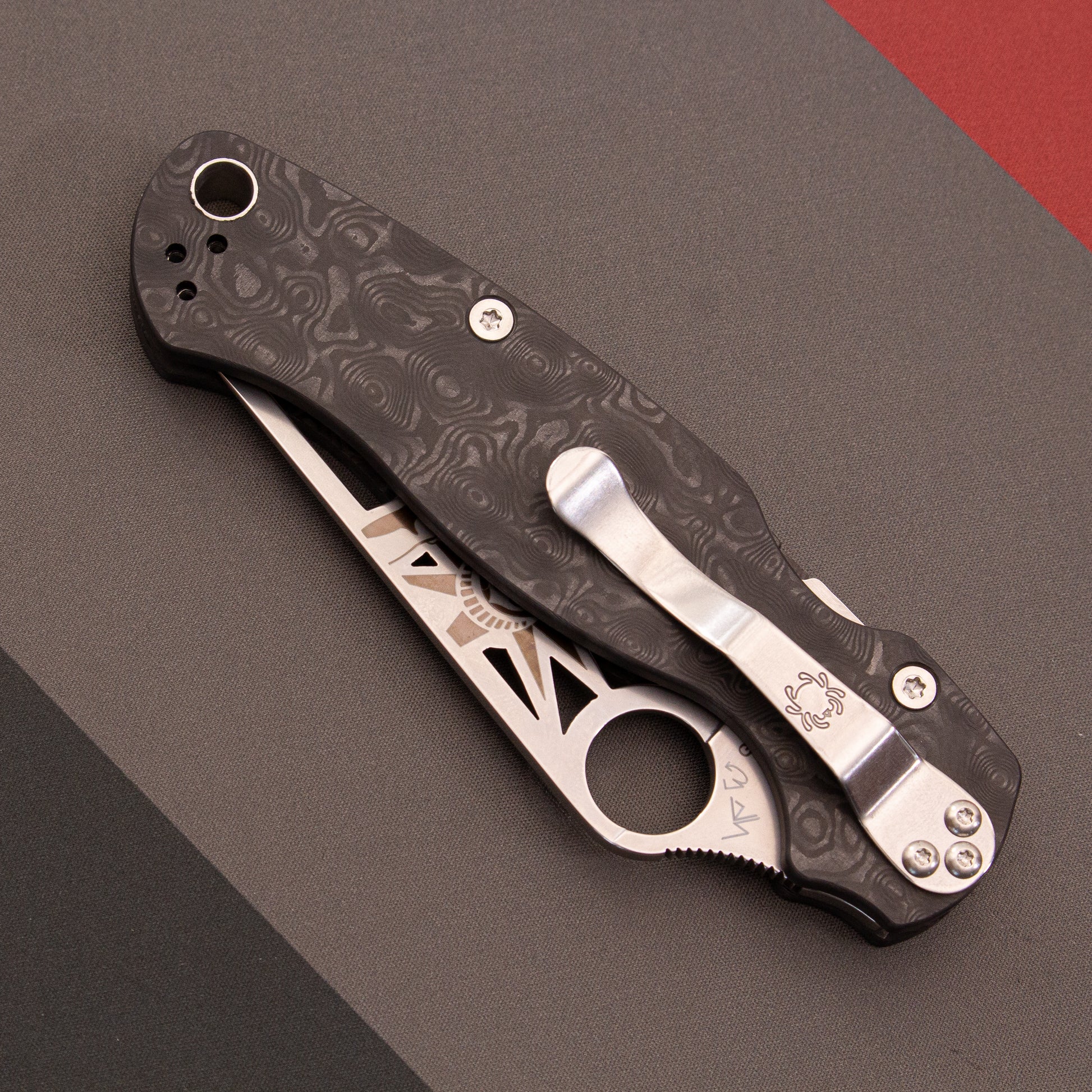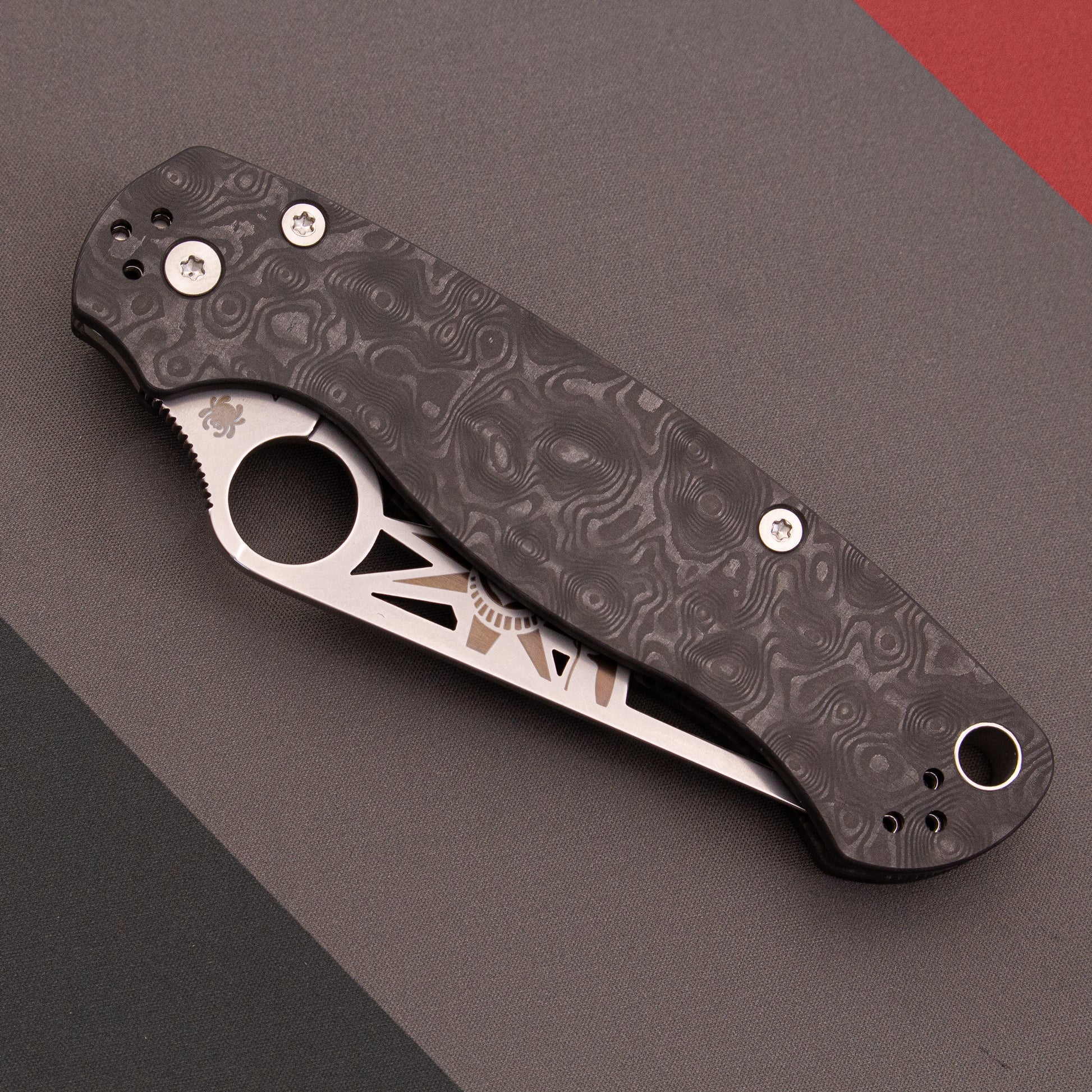 From the few units that I inspected, I was very impressed by the smoothness of the action - the best I've experienced on any Spyderco ever. YMMV of course. The slight sheen of the CF dune scales in the light is mesmerizing in person and feels great in hand. I've talked to a few customers and I agree that in a zoomed out photo, the knife looks a bit busy. However, if you get up close and inspect the details, I'm sure you'd gain a whole new appreciation for the great craftsmanship Spyderco is known for. This special exclusive variant of the PM2 is almost certainly not to be repeated so I recommend getting in on it while you still can!