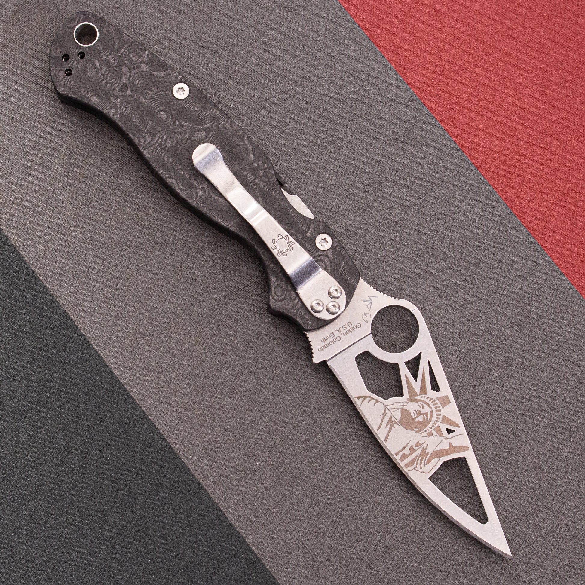 Created to commemorate a century of service, this extraordinary Spyderco Para Military 2 is an exclusive collaboration with H.L. Dalis, Inc. - and the first “cut-through” blade design from Spyderco since the legendary Q, R, and S Series more than 25 years ago. Limited to just 1,200 pieces, it features a precision-cut Statue of Liberty motif in the blade, making it instantly recognizable and destined for collector status.